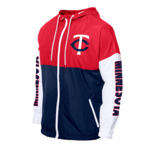 Minnesota Twins Color Block Navy/Red Hoodie Windbreaker