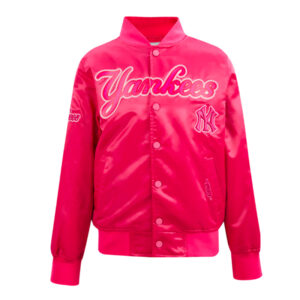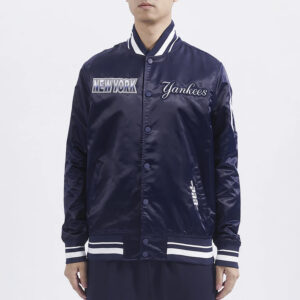 NY Yankees Turn It Up M Classic Rib Navy Satin Jacket