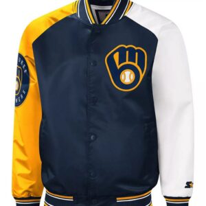Milwaukee Brewers Reliever Satin Raglan Full-Snap Blue and Yellow Jacket