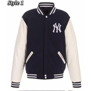 NY Yankees Navy Blue and White Letterman Jacket