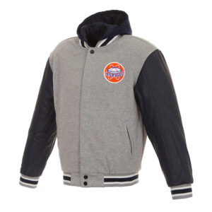 Houston Astros Navy Blue and Gray Hooded Varsity Jacket