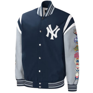 NY Yankees Title Holder Varsity Navy and Gray Satin Jacket