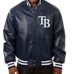 Varsity Tampa Bay Rays Navy Blue Leather Jacket