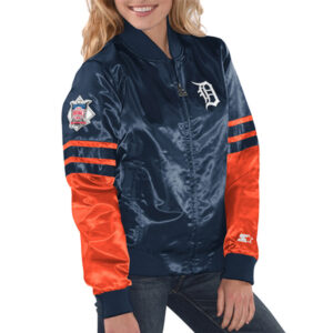 Detroit Tigers Tie Breaker Navy Satin Jacket