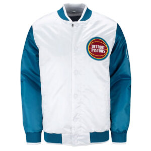 Pistons Ty Mopkins Teal and White Satin Jacket