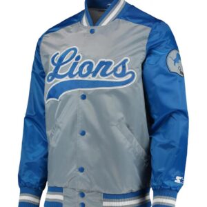 Detroit Lions The Tradition II Grey and Blue Varsity Satin Jacket