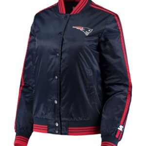 Overtime New England Patriots Full-Snap Navy Varsity Satin Jacket