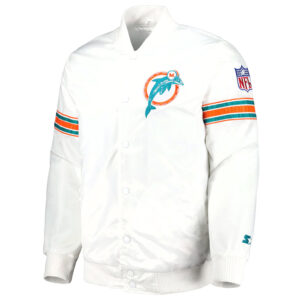 Miami Dolphins The Power Forward White Full-Snap Satin Jacket