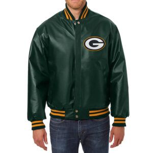 Green Bay Packers Bomber Varsity Green Leather Jacket