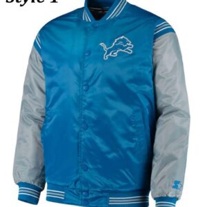 Detroit Lions Satin Blue and Grey Starter Jacket
