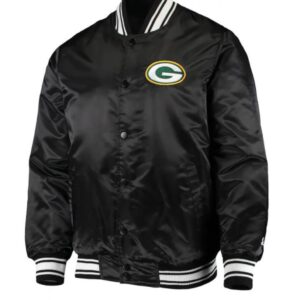→ Starter 90s reissue bomber. Black with white stripes. Bold team logo. Instant cred.