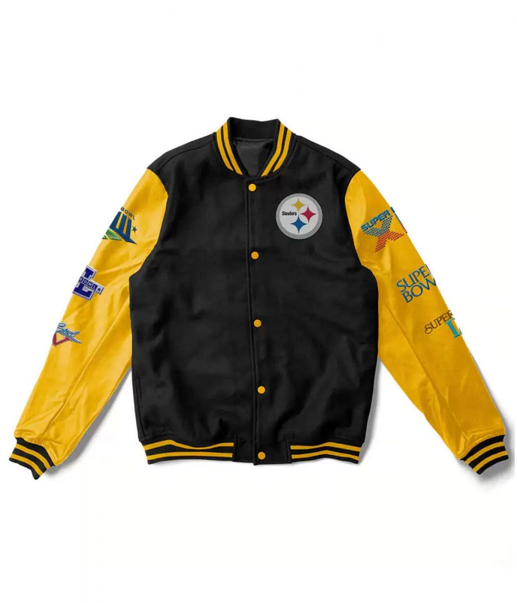6X Pittsburgh Steelers Super Bowl Champions Yellow/Black Varsity Jacket