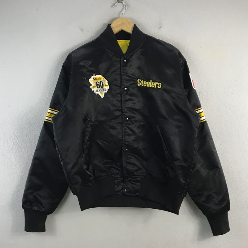 90’s Pittsburgh Steelers Bomber Black Satin Jacket