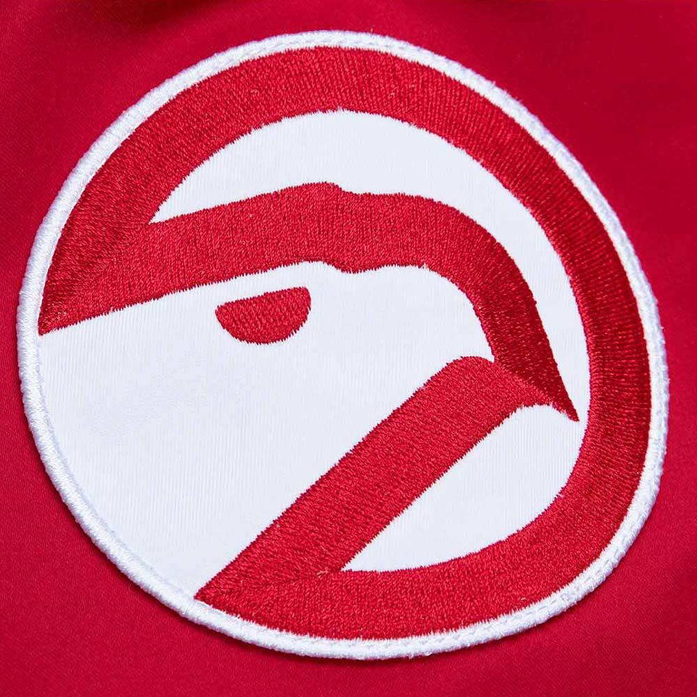 - Logo: Atlanta Hawks vintage logo on the front, sleeve, and back