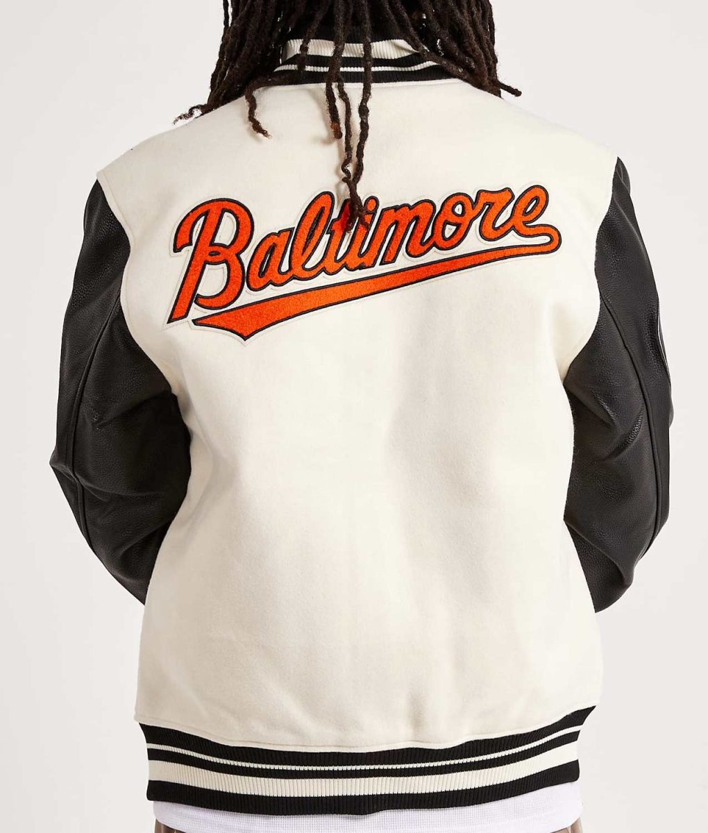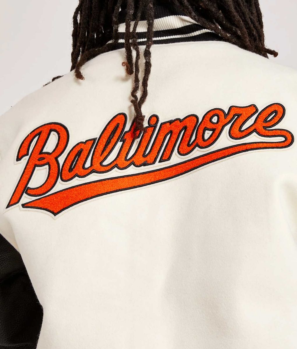 Baltimore Orioles Black and Off White Varsity Jacket