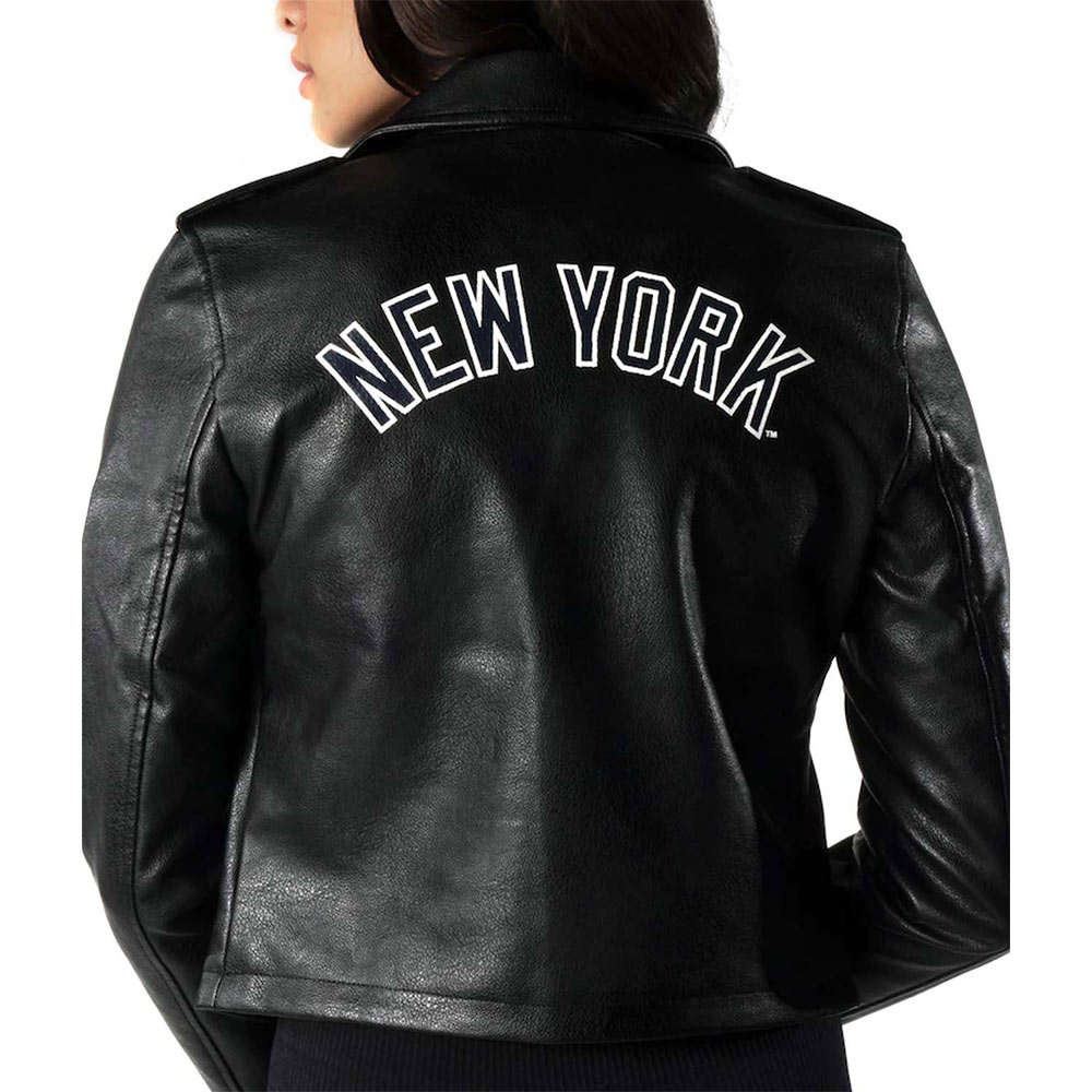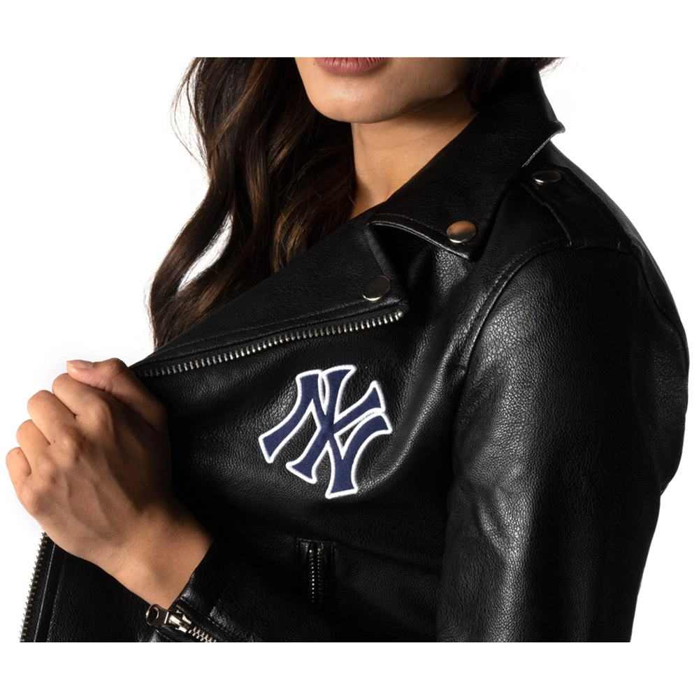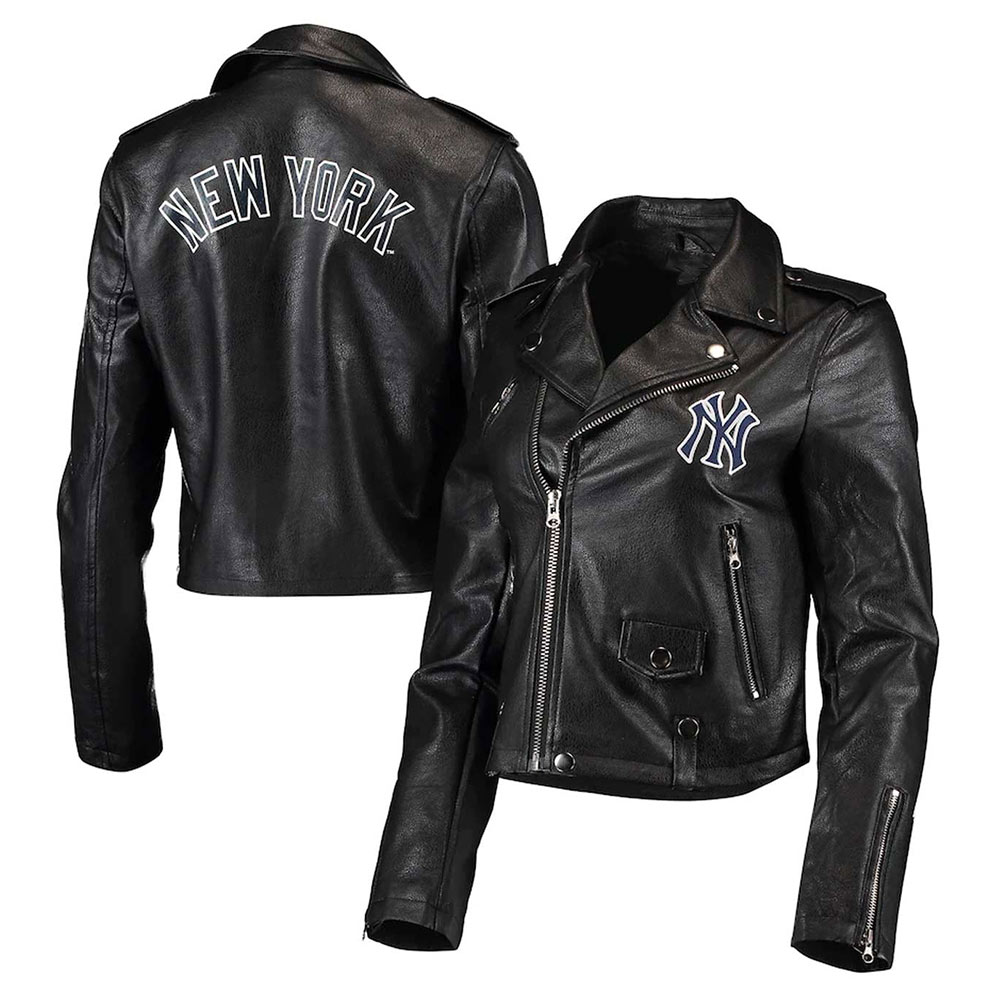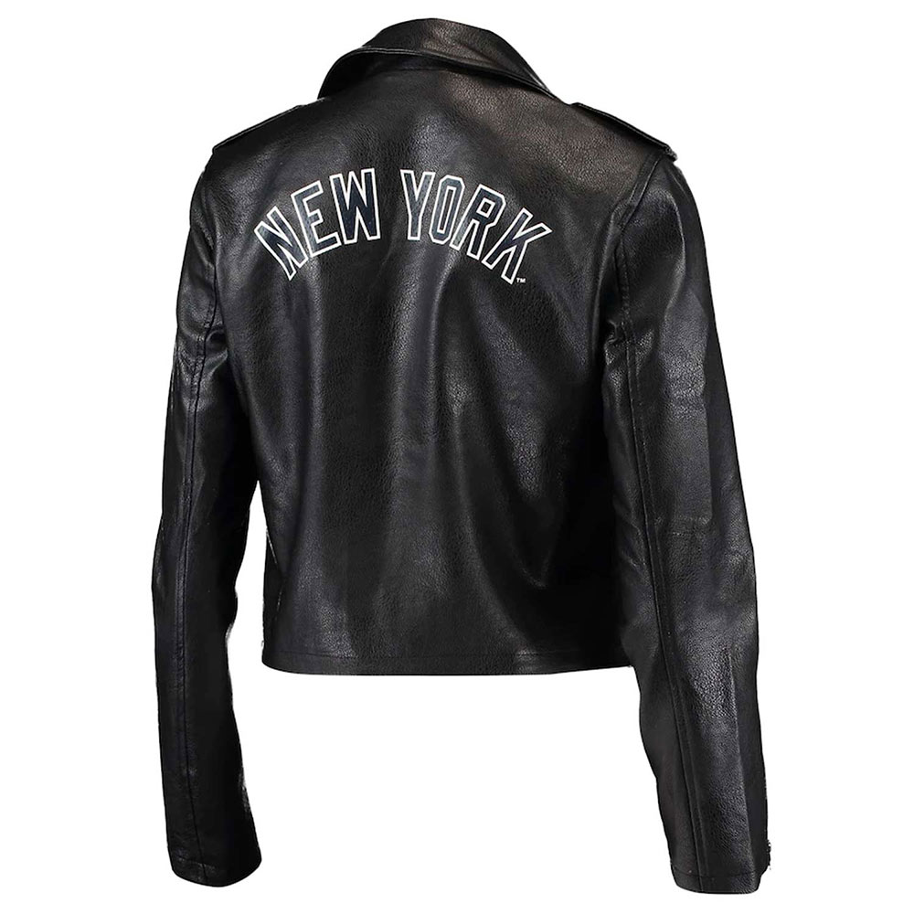 Biker NY Yankees Black Leather Jacket