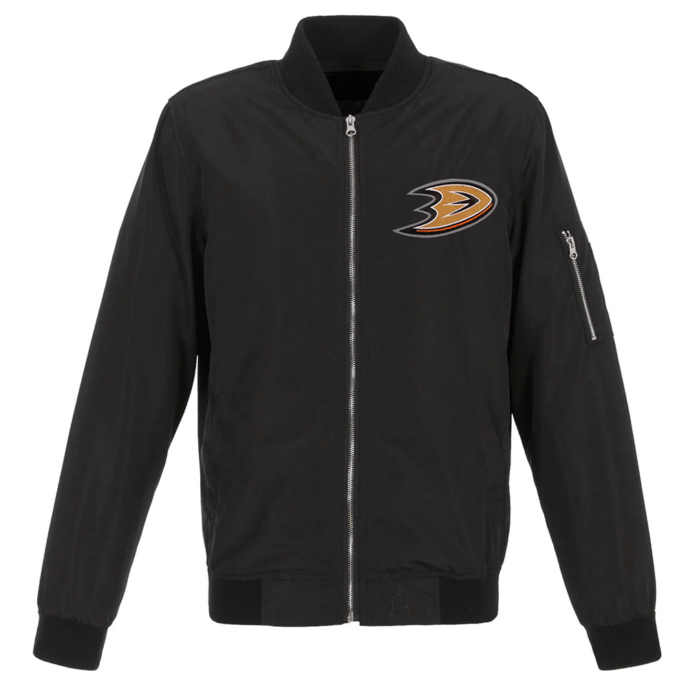 Black Anaheim Ducks Nylon Bomber Lightweight Full-Zip Jacket