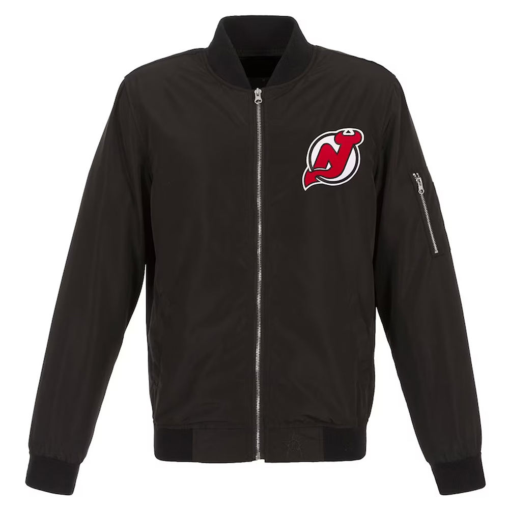 Black New Jersey Devils Lightweight Bomber Nylon Jacket