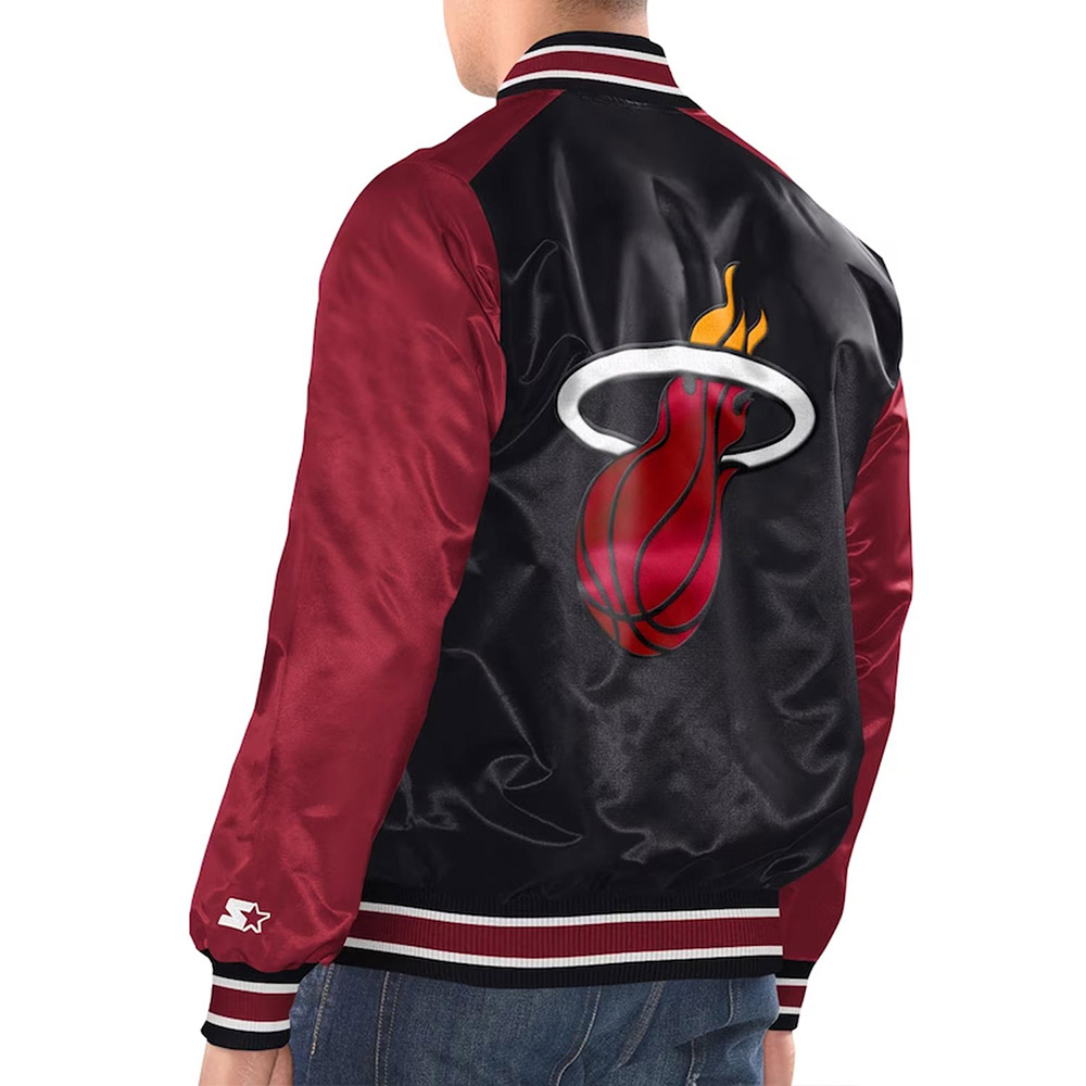 Black/Red Miami Heat Renegade Varsity Satin Jacket