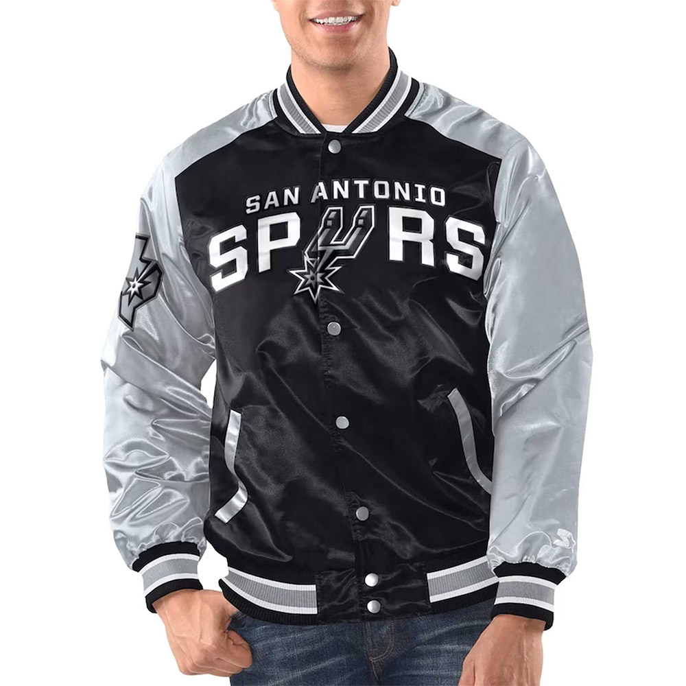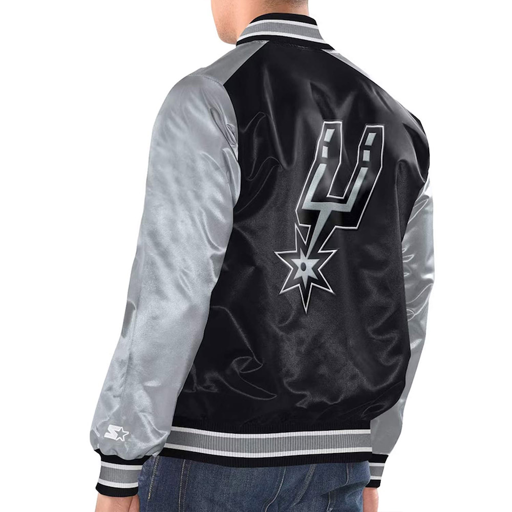 Black/Silver San Antonio Spurs Renegade Varsity Satin Jacket