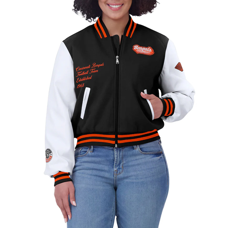 Black/White Cincinnati Bengals Varsity Full-Zip Jacket