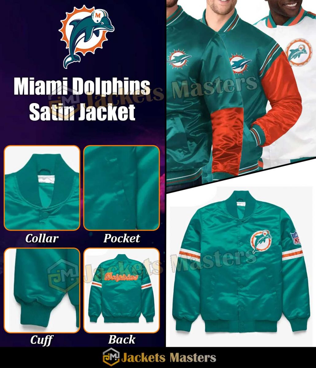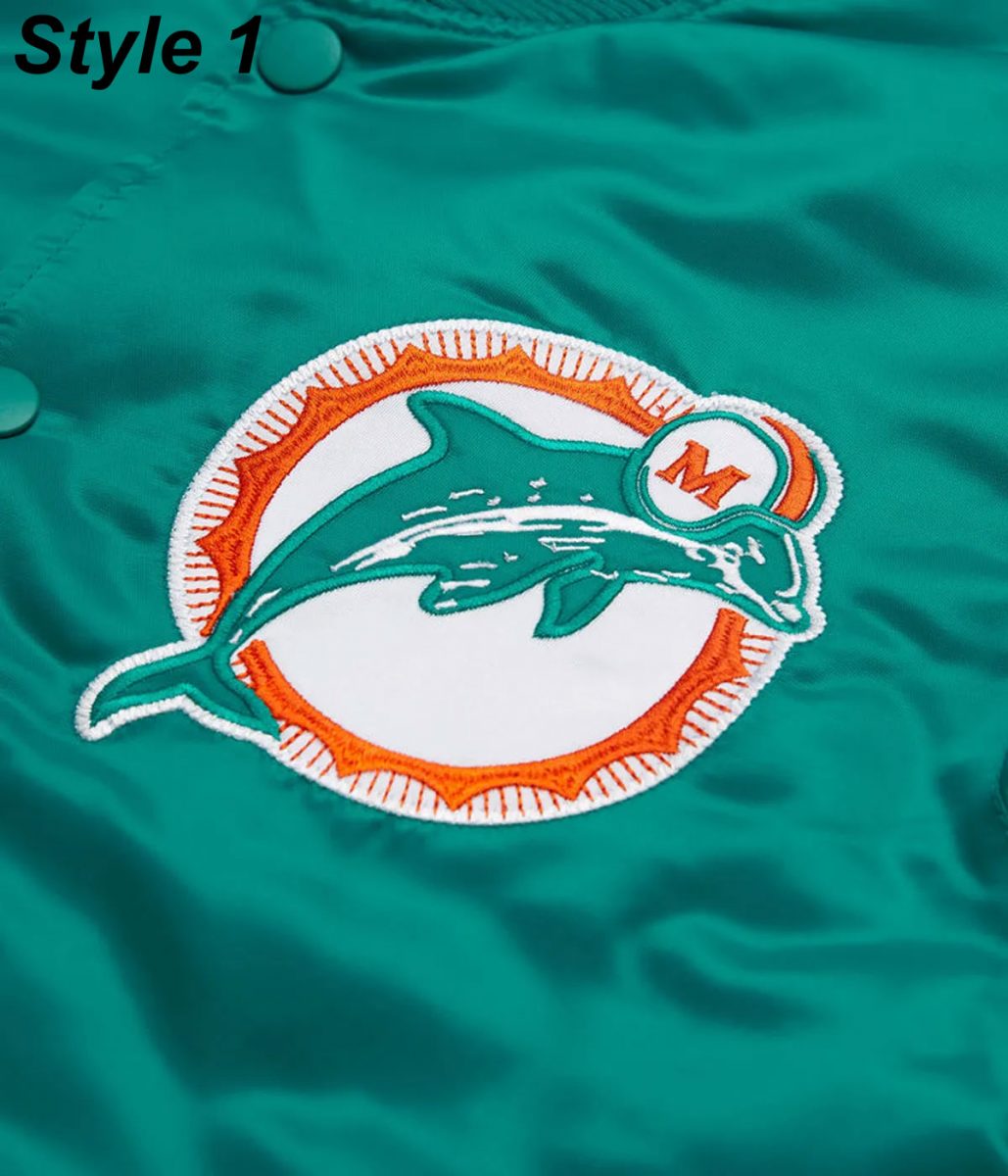 Bomber Miami Dolphins Teal Green Satin Jacket