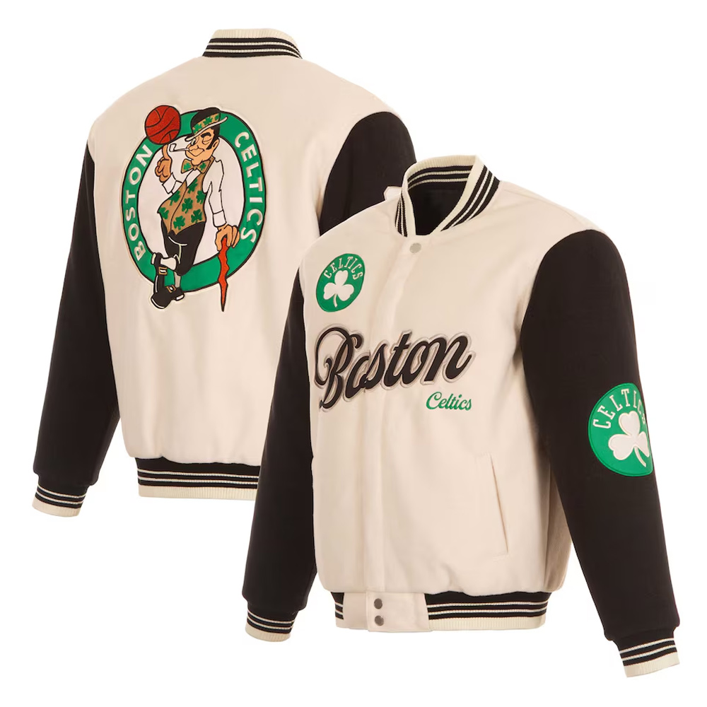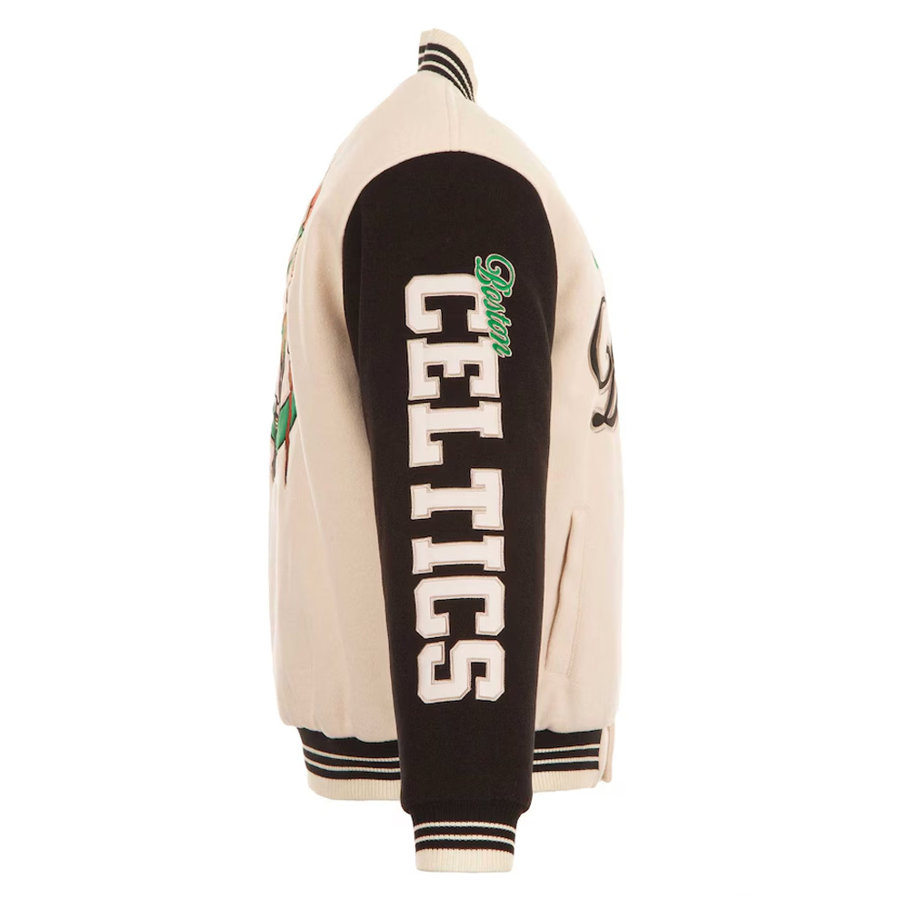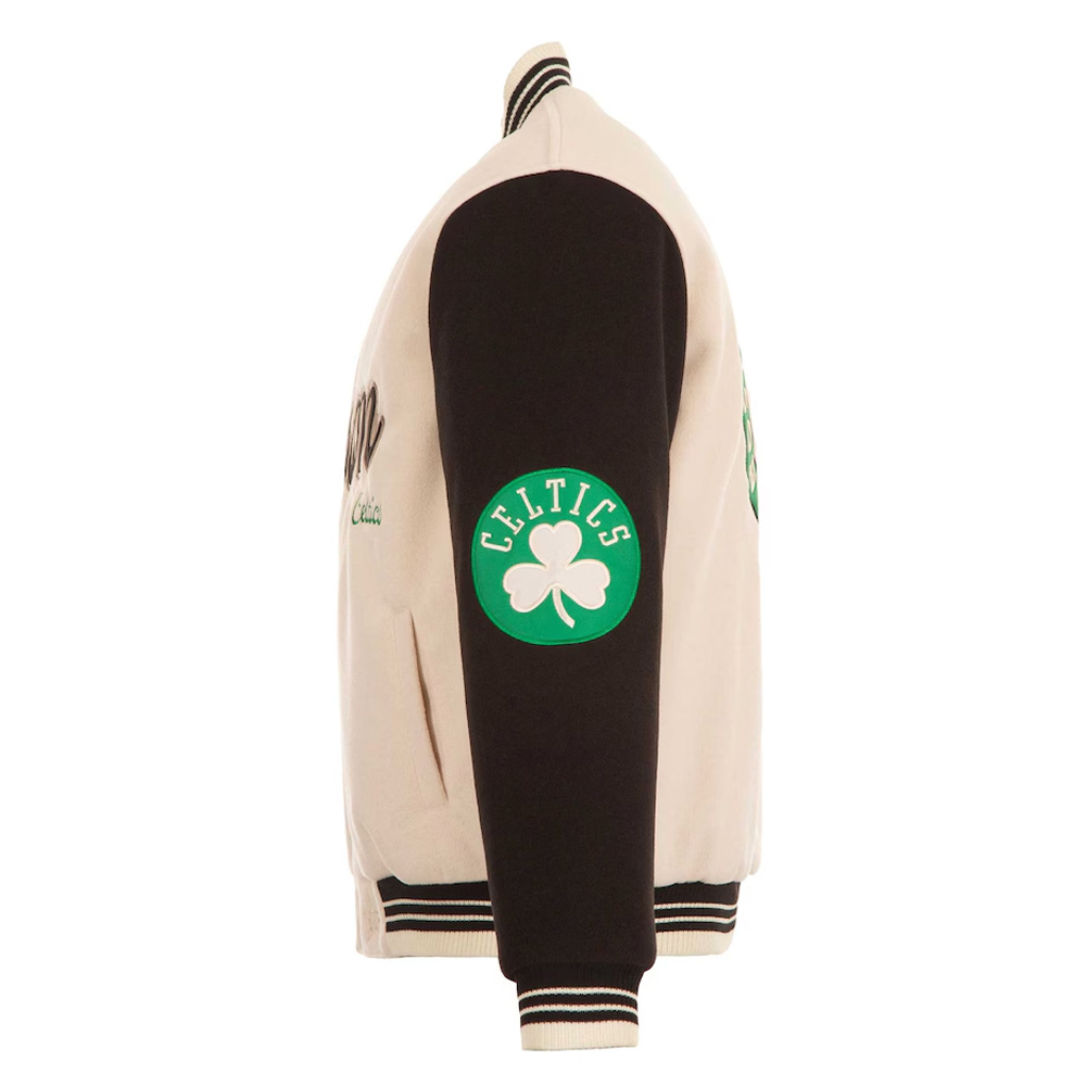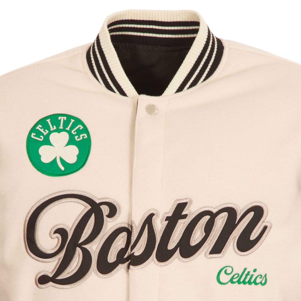 Boston Celtics Cream and Black Varsity Jacket