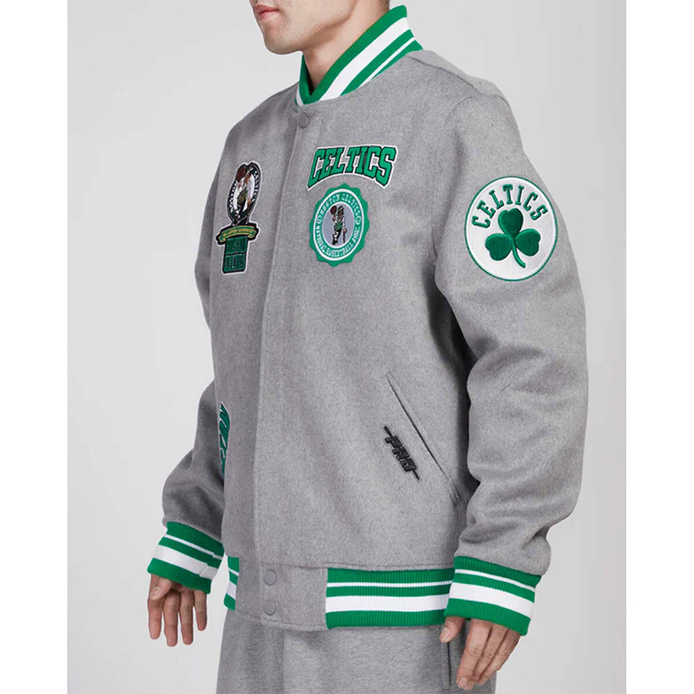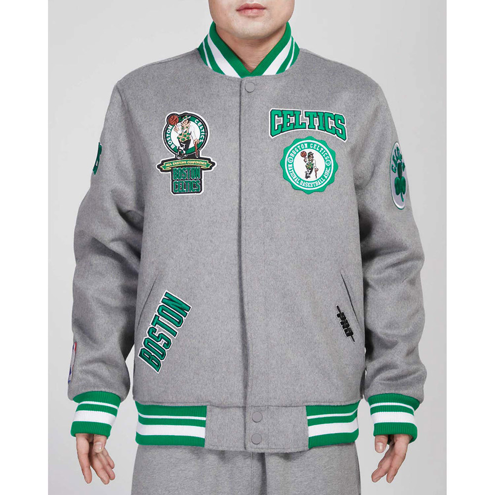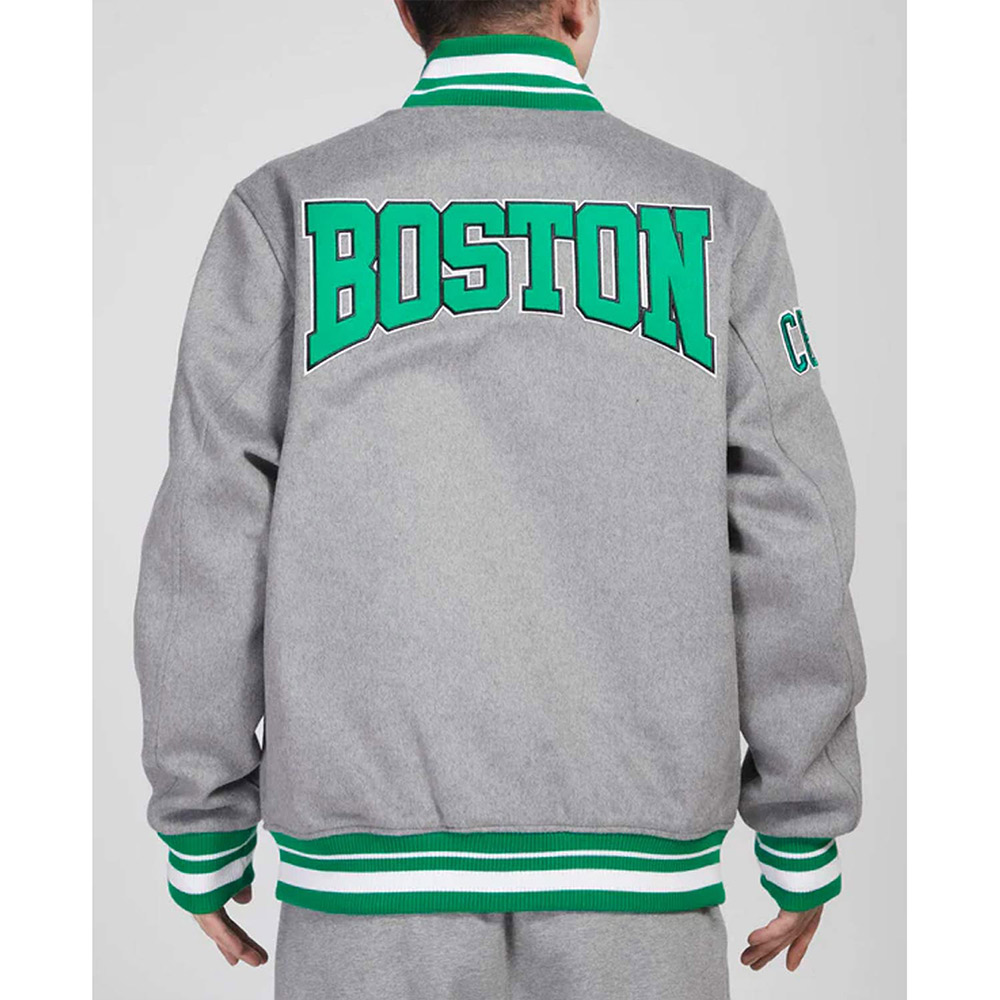 Boston Celtics Crest Emblem Heather Grey Varsity Wool Jacket