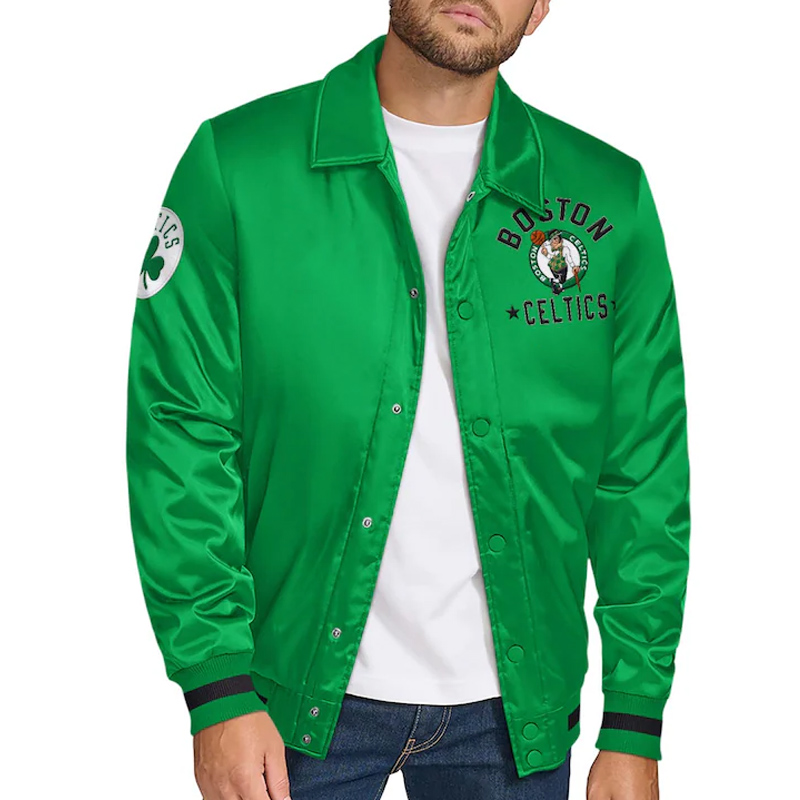 Boston Celtics Stitch Applique Kelly Green Satin Jacket