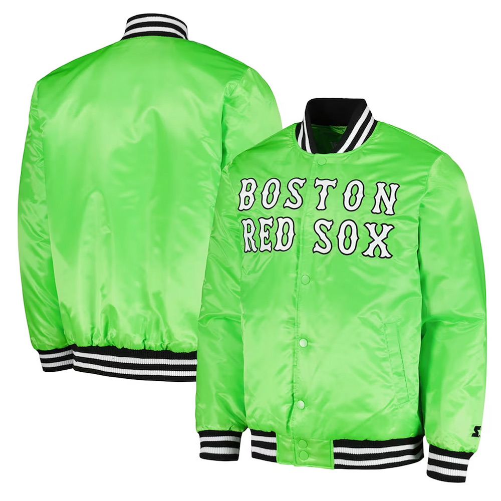 Boston Red Sox Cross Bronx Fashion Neon Green Satin Jacket