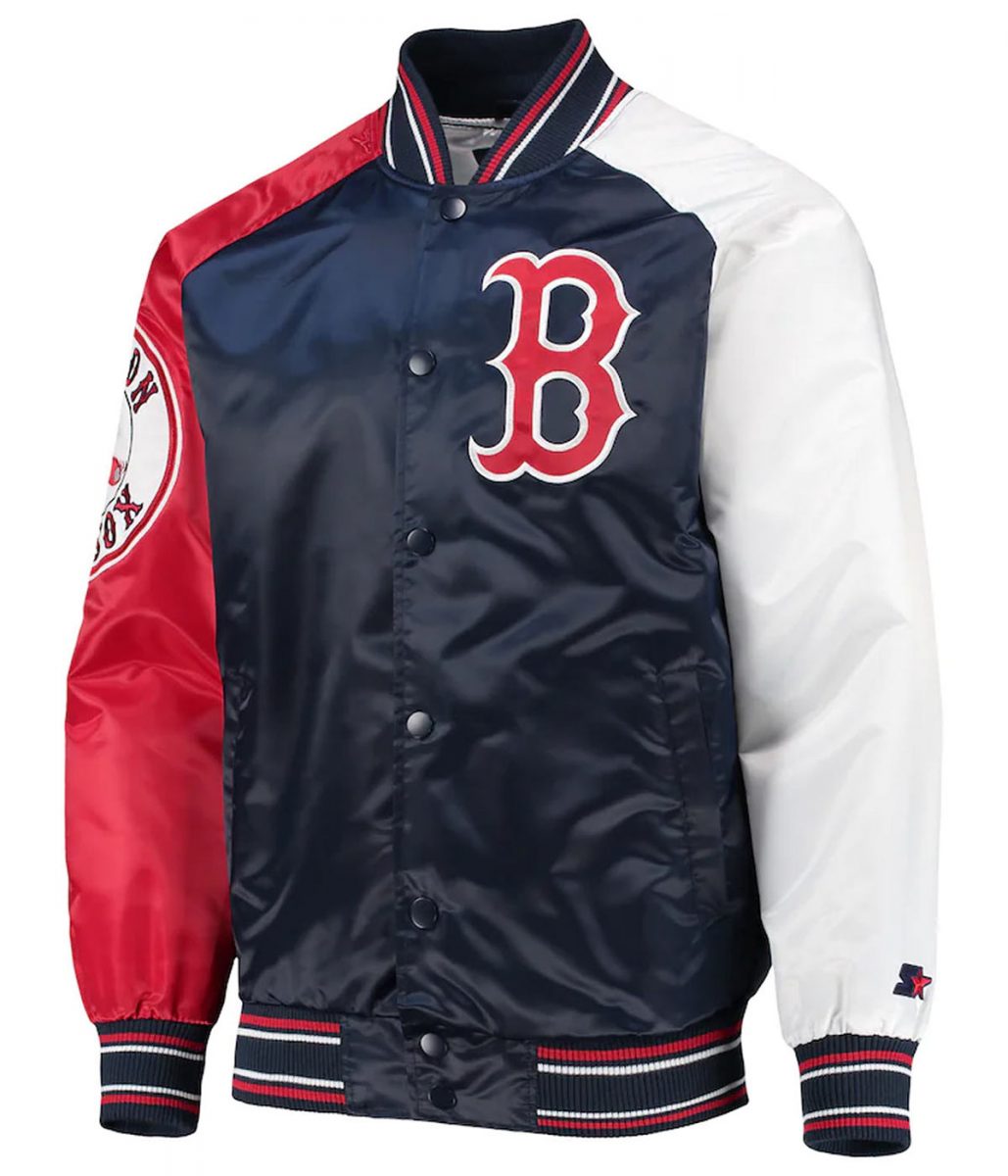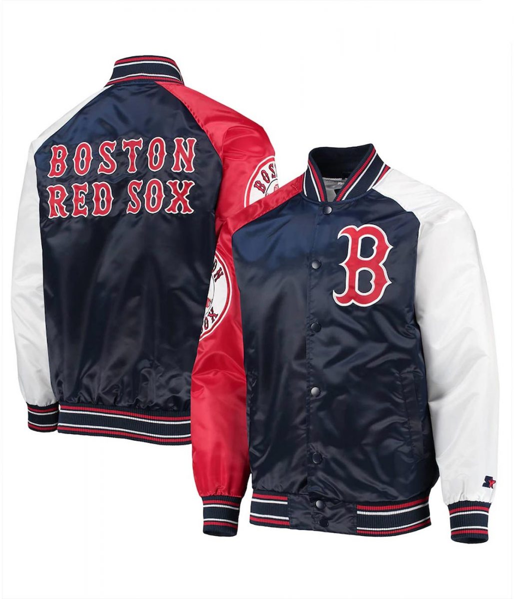 Boston Red Sox Reliever Raglan Satin Blue and Red Jacket