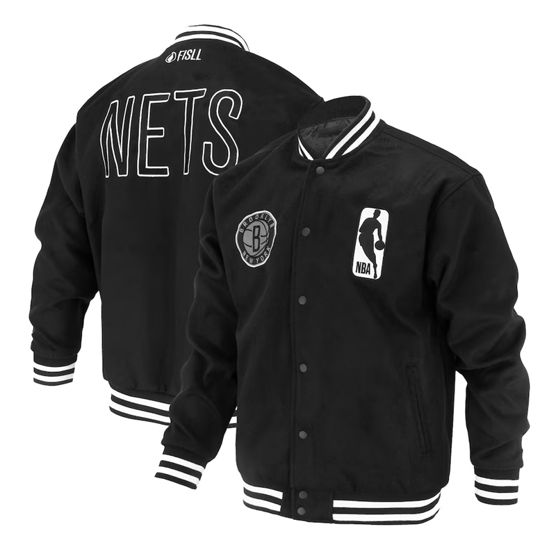 Brooklyn Nets Logoman Shadow Black Varsity Jacket