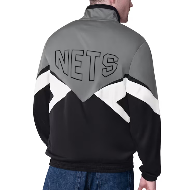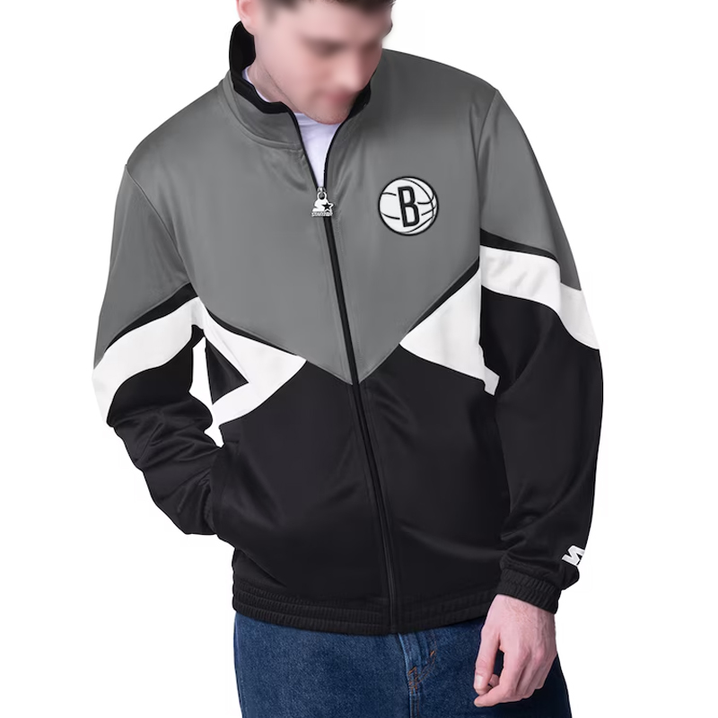 Brooklyn Nets Rush Applique Gray/Black Full-Zip Track Jacket