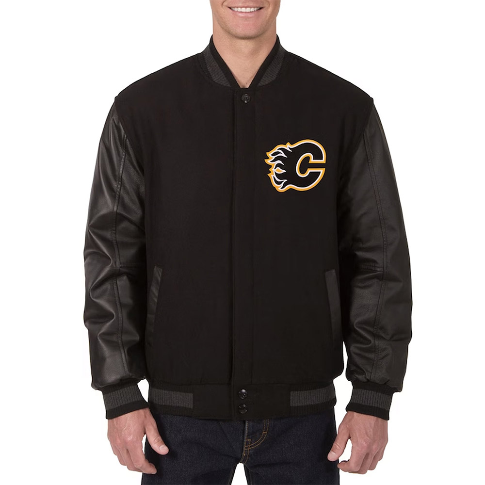 Calgary Flames Varsity Black Wool & Leather Jacket