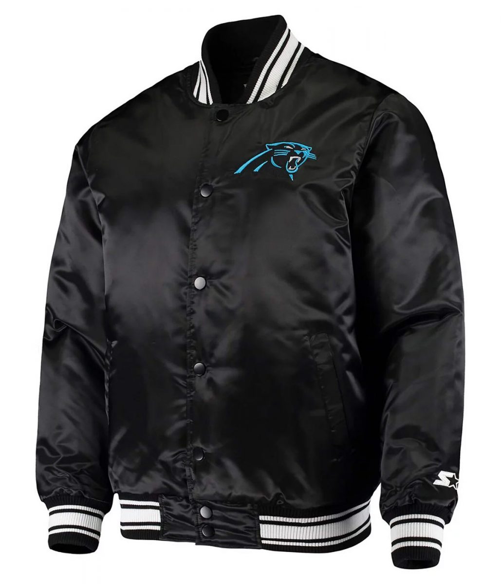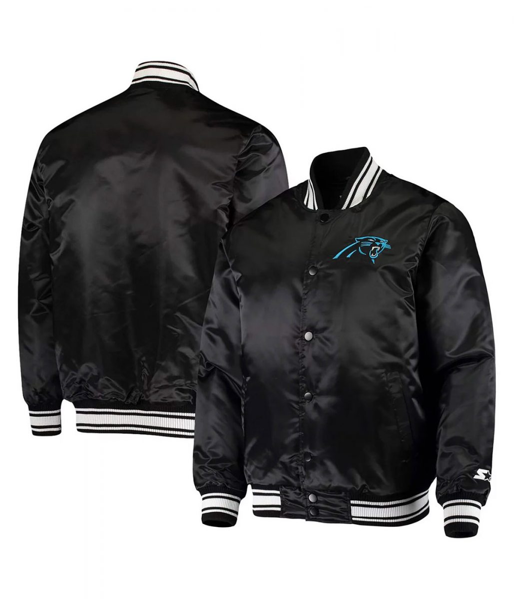 Carolina Panthers Locker Room Black Bomber Satin Jacket