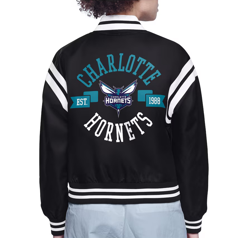 Charlotte Hornets Printed Logo Varsity Satin Jacket