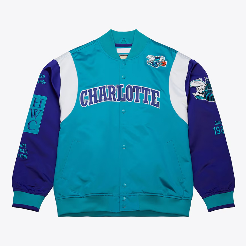 Charlotte Hornets Team Origins Teal Satin Jacket