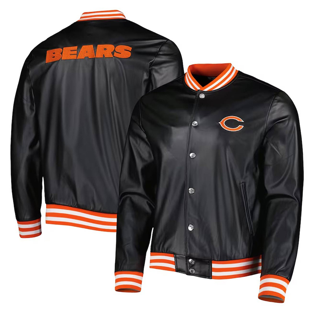 Chicago Bears Metallic Black Leather Jacket