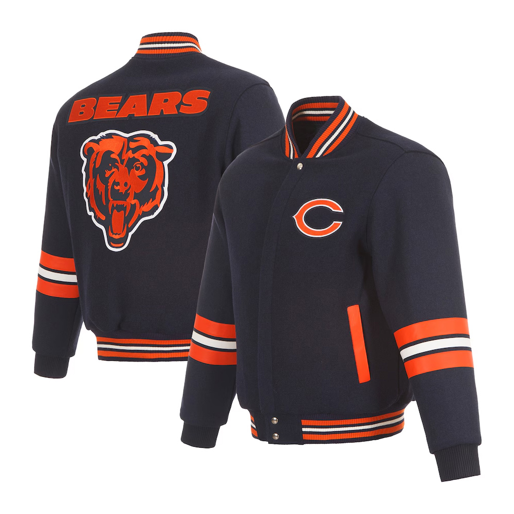 Chicago Bears Striped Navy Varsity Wool Jacket