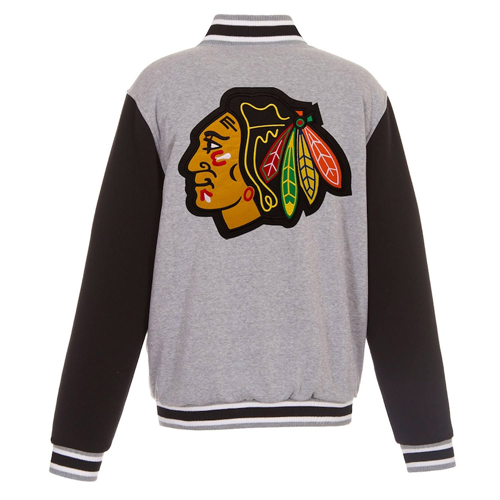 Chicago Blackhawks Gray and Black Varsity Wool Jacket