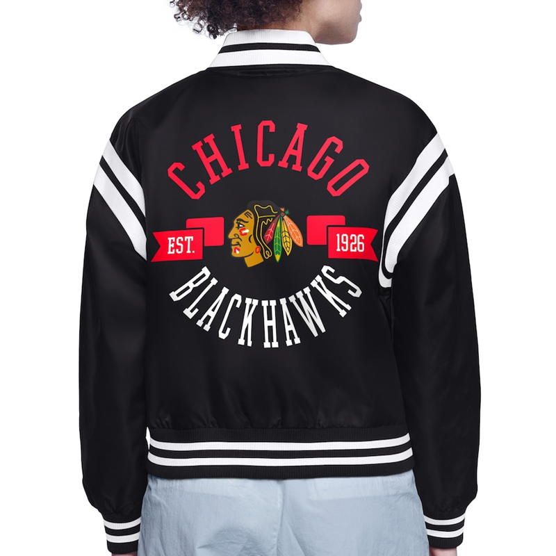 Chicago Blackhawks Printed Logo Varsity Satin Jacket