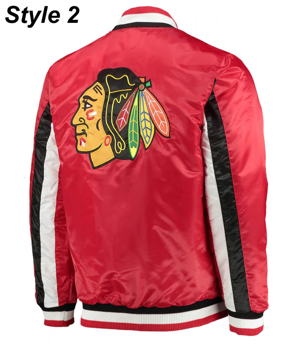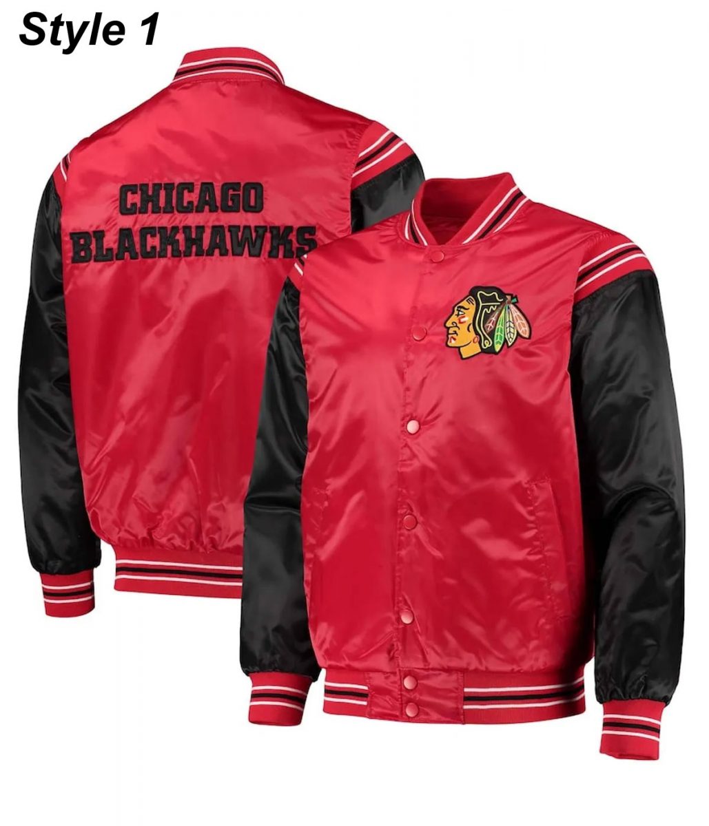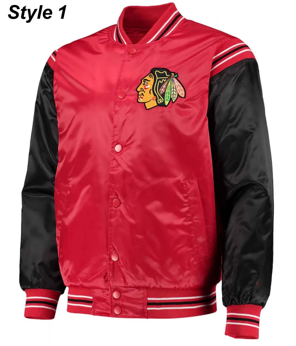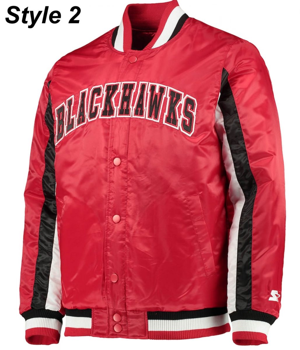 Chicago Blackhawks Red and Black Satin Varsity Jacket