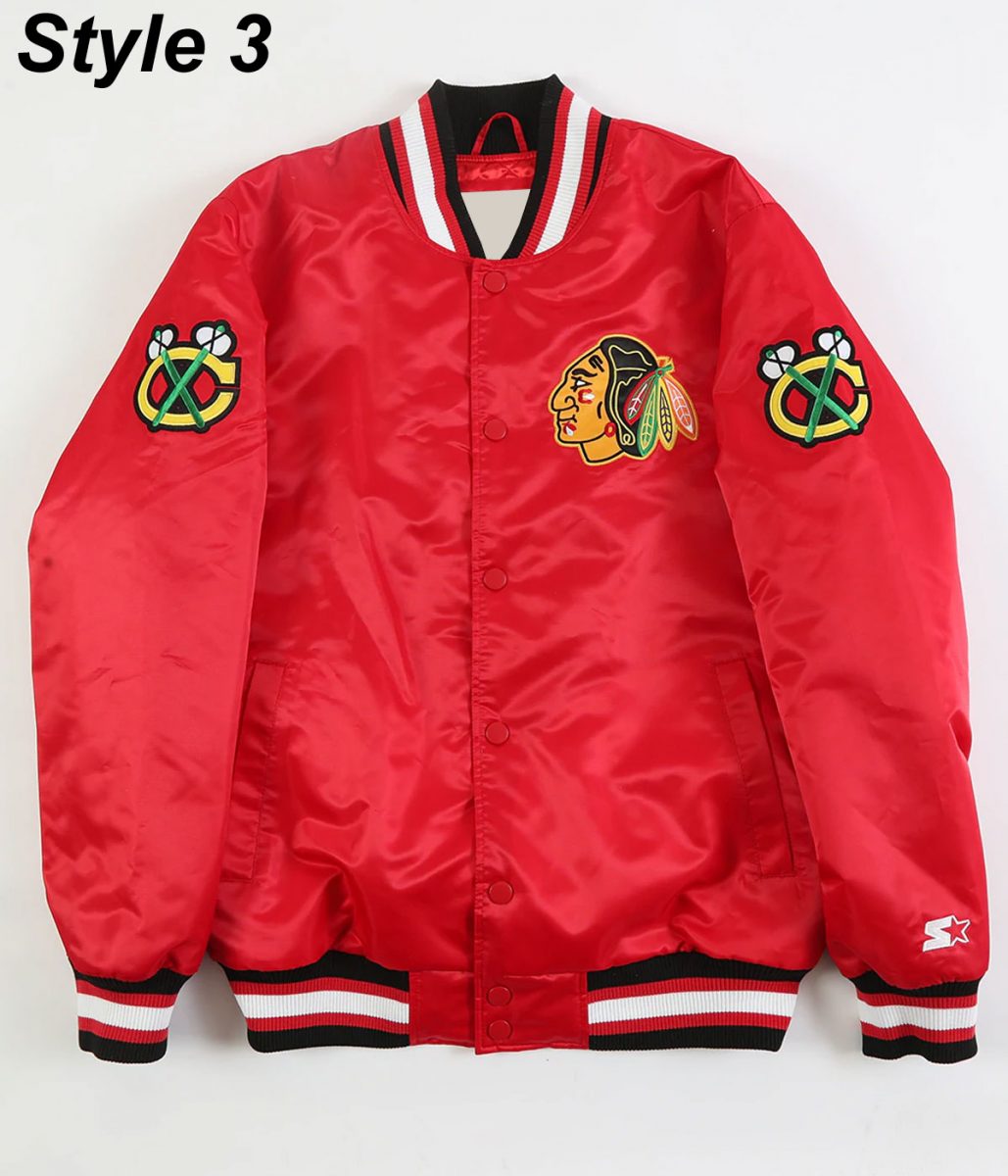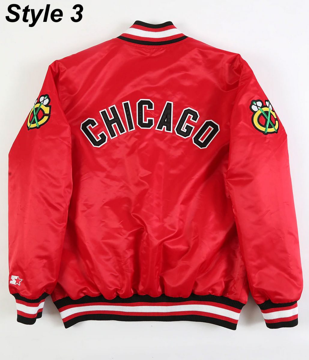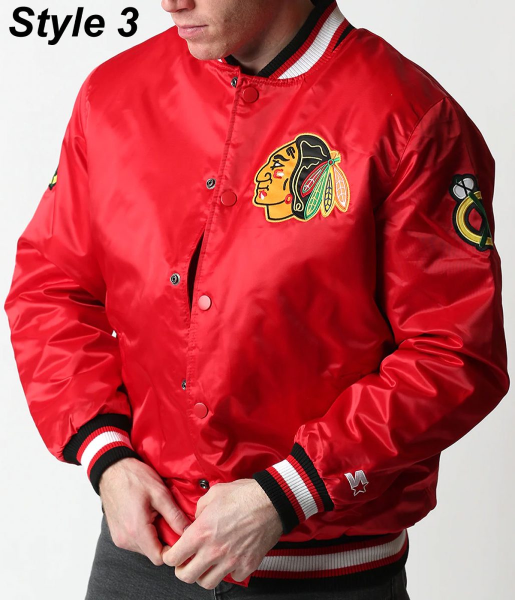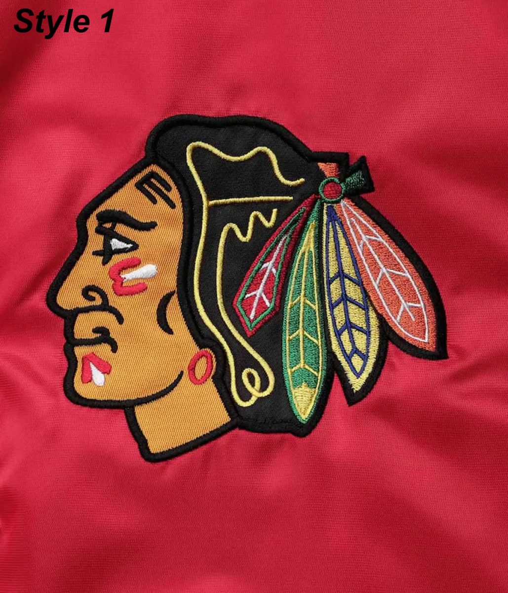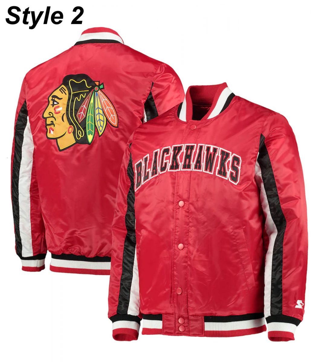 Chicago Blackhawks Red and Black Satin Varsity Jacket