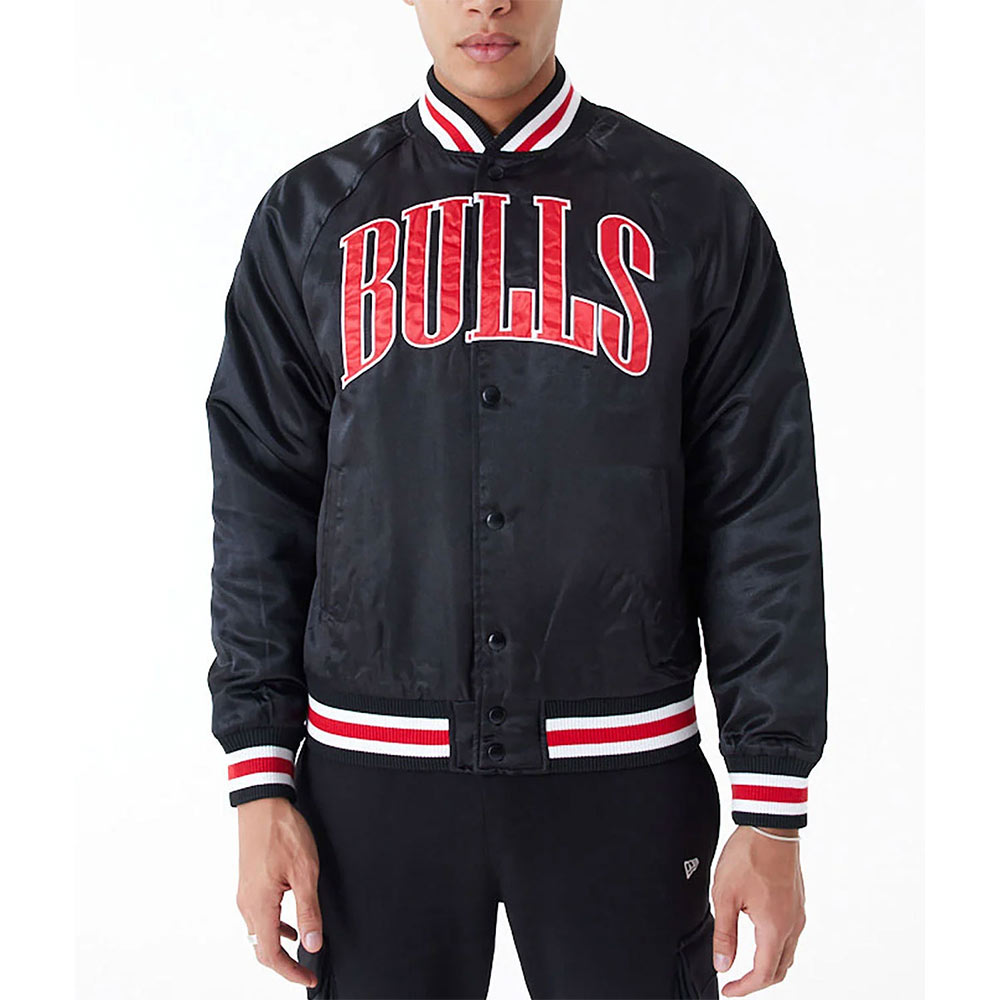 Chicago Bulls Applique Black Bomber Satin Jacket