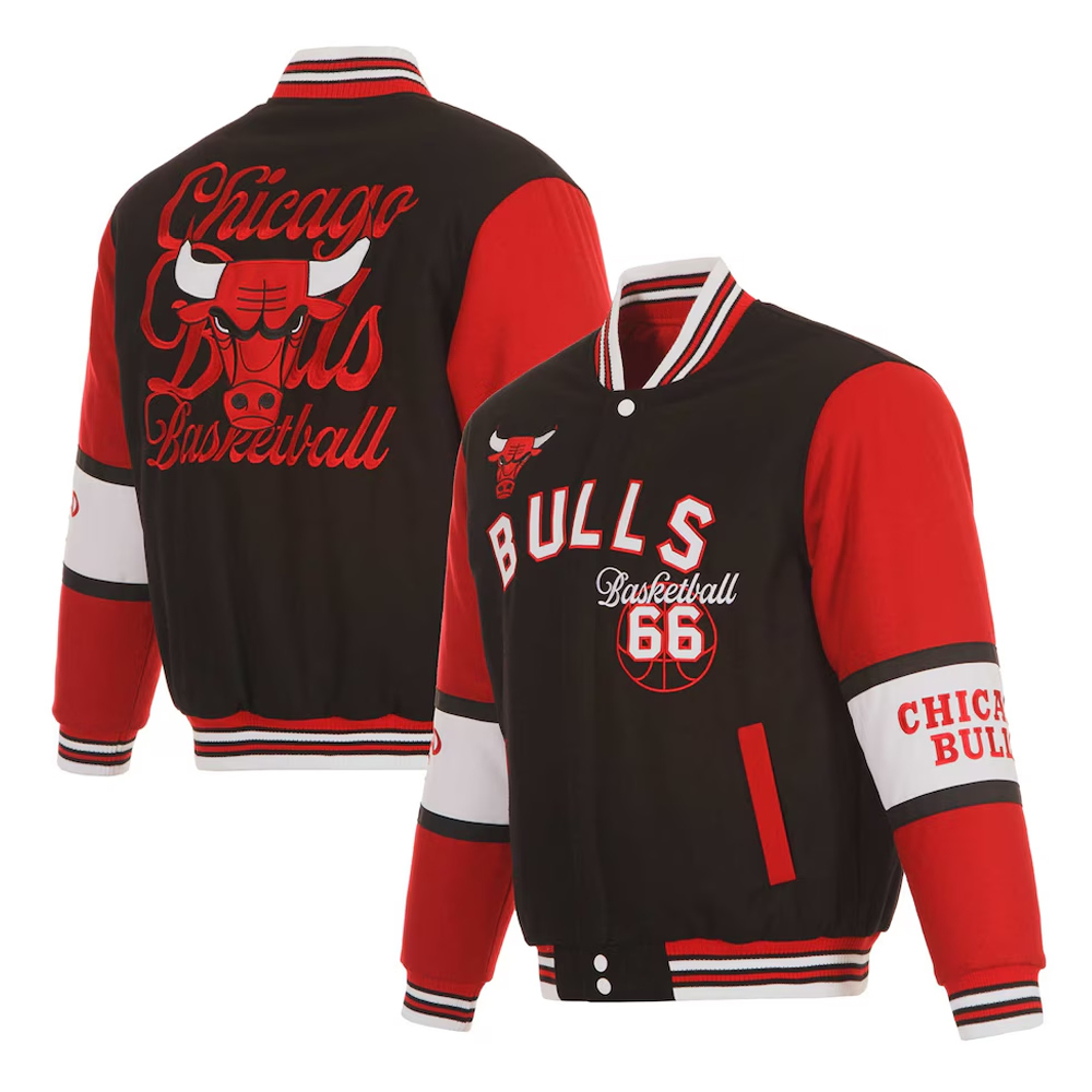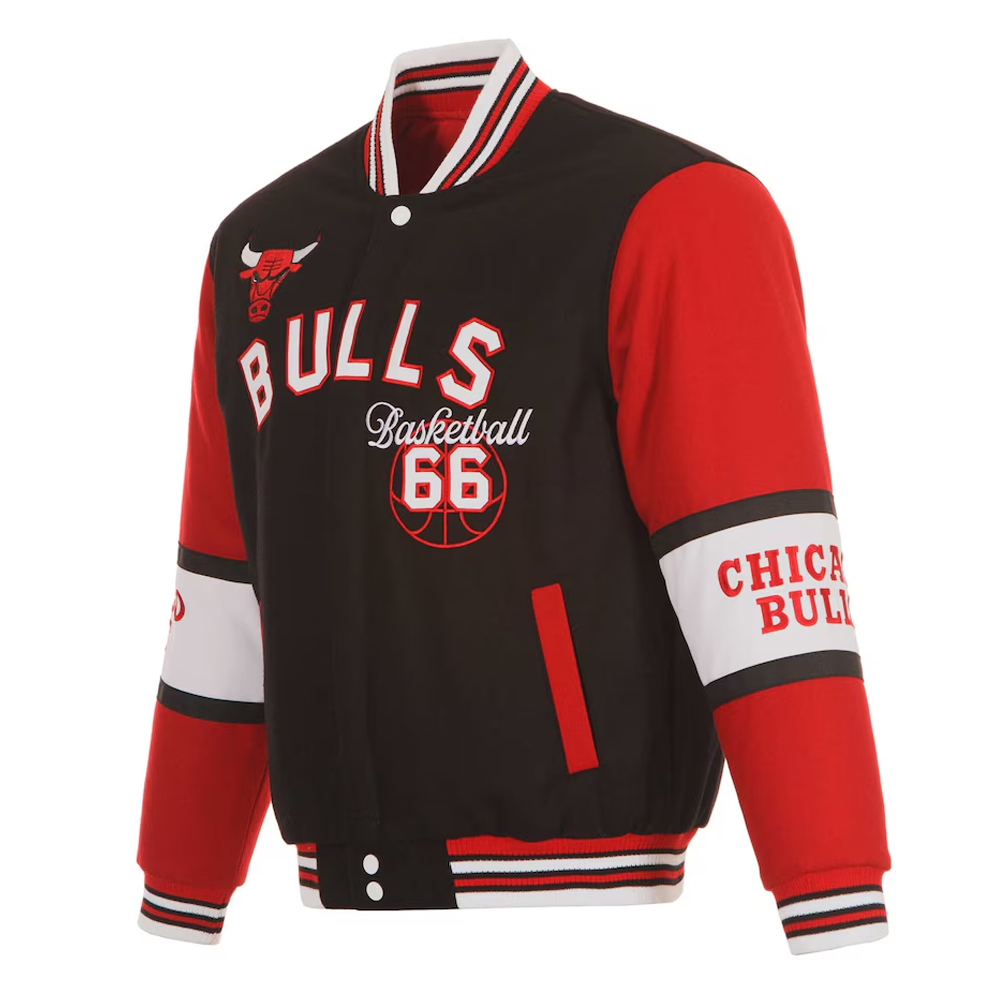 Chicago Bulls Black and Red Varsity Wool Jacket