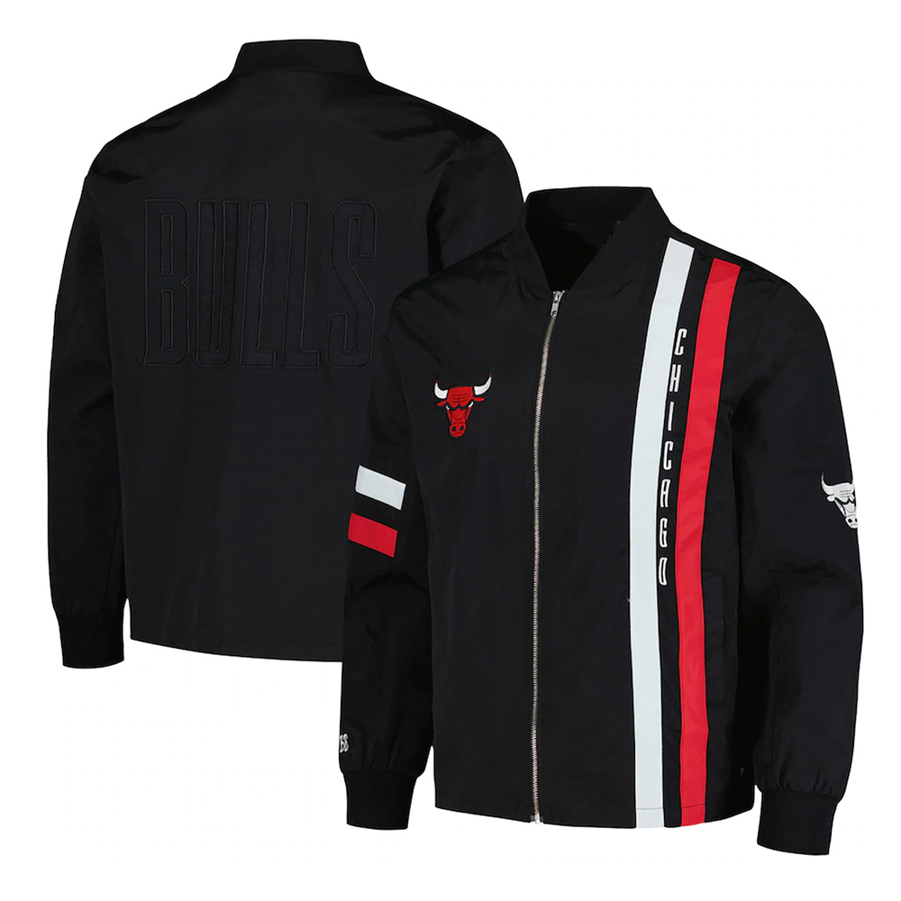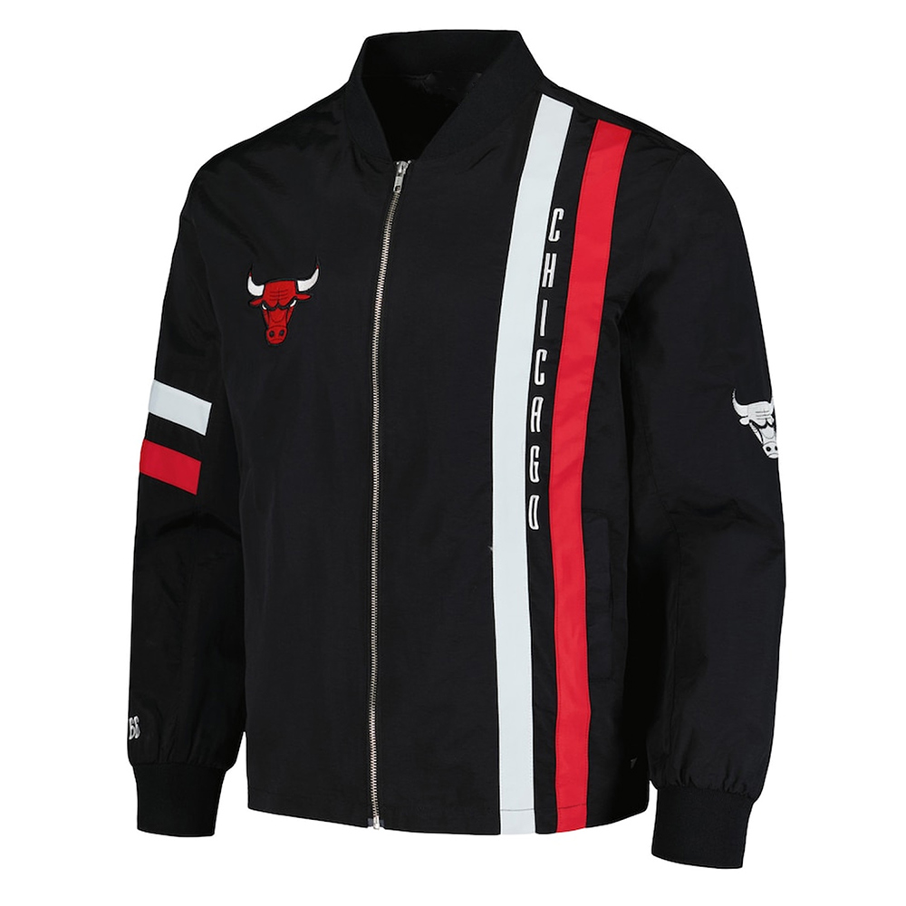 Chicago Bulls Black Stitch Applique Bomber Jacket