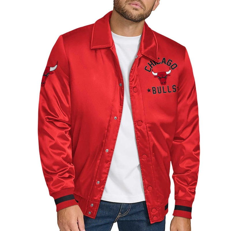 Chicago Bulls Stitch Applique Red Satin Jacket