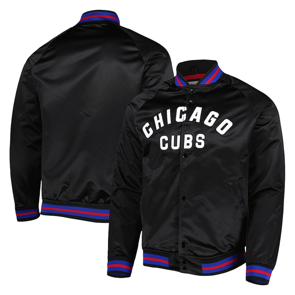 Chicago Cubs Bomber Black Satin Jacket