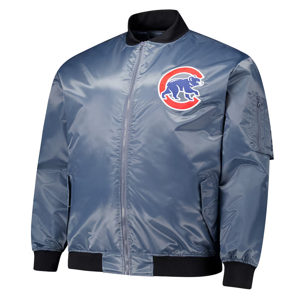 Chicago Cubs Charcoal Bomber Full-Zip Jacket