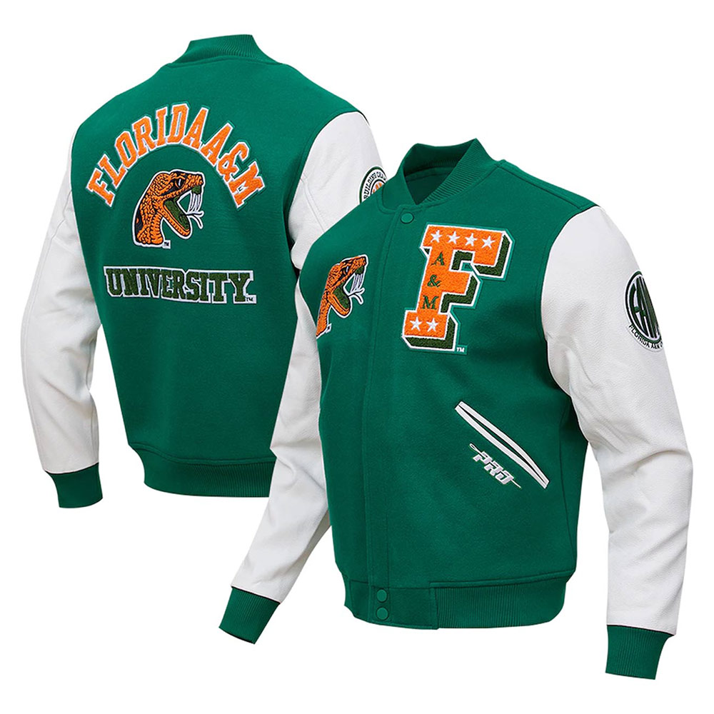 Classic Florida A&M Rattlers Varsity Green and White Jacket